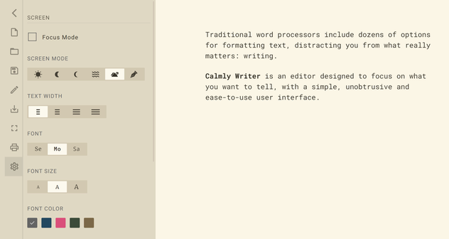 Calmly Writer: Distraction-free place to write